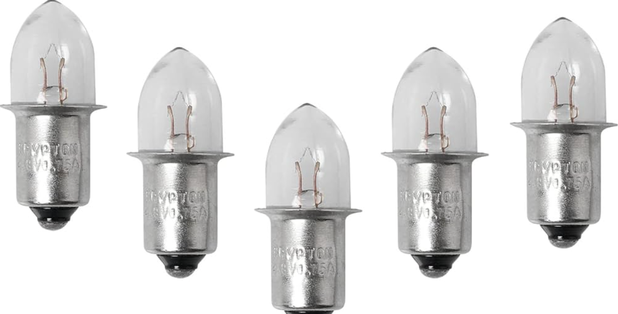 Ampolleta de repuesto para linternas portátiles que utilizan conexión tipo bayoneta. Diseñada para funcionar con equipos de 4.8 voltios, comúnmente alimentados por baterías recargables.