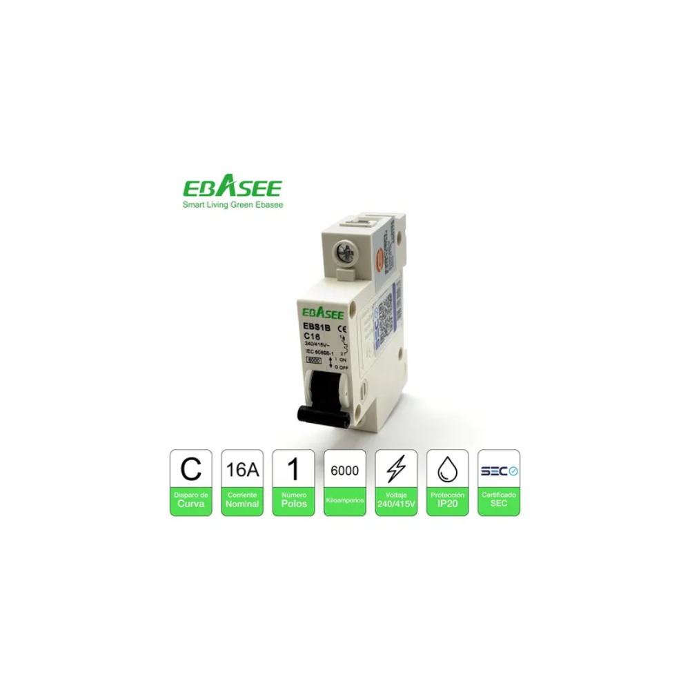 Interruptor automático unipolar de 16 amperes diseñado para la protección de circuitos eléctricos contra sobrecargas y cortocircuitos. Permite la desconexión rápida y segura de la alimentación en condiciones de falla, protegiendo cables y equipos eléctricos. Adecuado para instalaciones residenciales, comerciales e industriales ligeras.