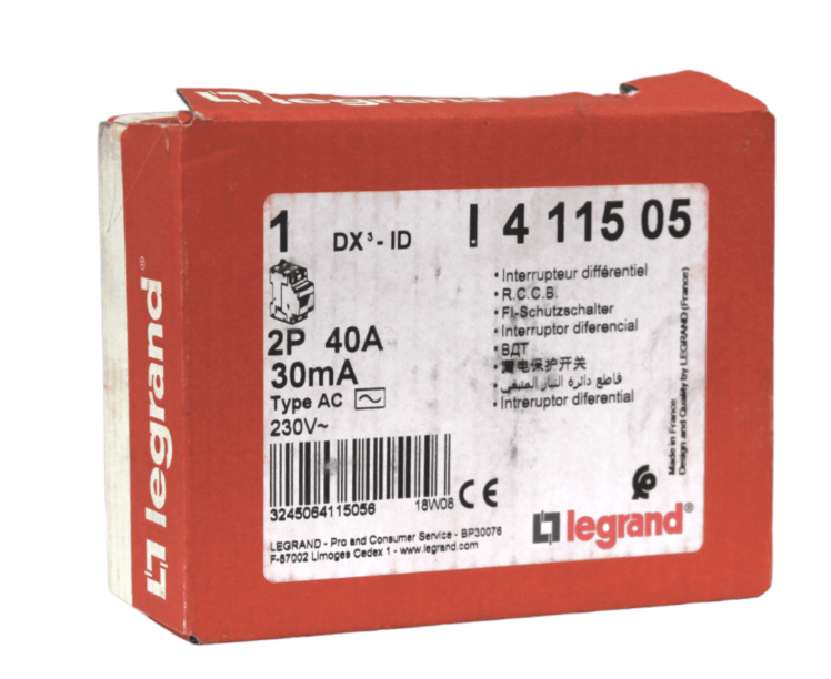 Este interruptor diferencial bipolar de Legrand, modelo DX³ Ref 411505, es un dispositivo de protección eléctrica diseñado para detectar fugas de corriente (descargas a tierra) y cortar el suministro automáticamente. Está pensado para circuitos domésticos o residenciales, actuando como barrera de seguridad ante fallos que podrían provocar choques eléctricos o incendios.