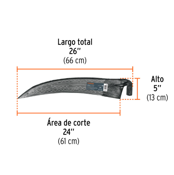 Guadaña Truper de 26”, sin mango, ideal para corte de pasto, maleza y vegetación en trabajos agrícolas y de mantención.