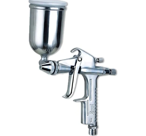 La pistola Voylet F-2 aerógrafo con copón es una herramienta neumática de precisión y baja presión, diseñada para trabajos de pintura fina y controlada. Utiliza sistema de gravedad, lo que mejora la atomización y reduce el consumo de aire.