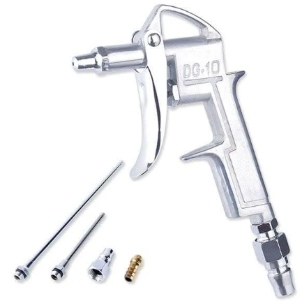 La pistola sopleteadora Voylet PAS-5 es un kit neumático de 5 piezas diseñado para trabajos de limpieza, secado y soplado con aire comprimido. Incluye diferentes boquillas y accesorios que permiten adaptar el flujo de aire según la aplicación.