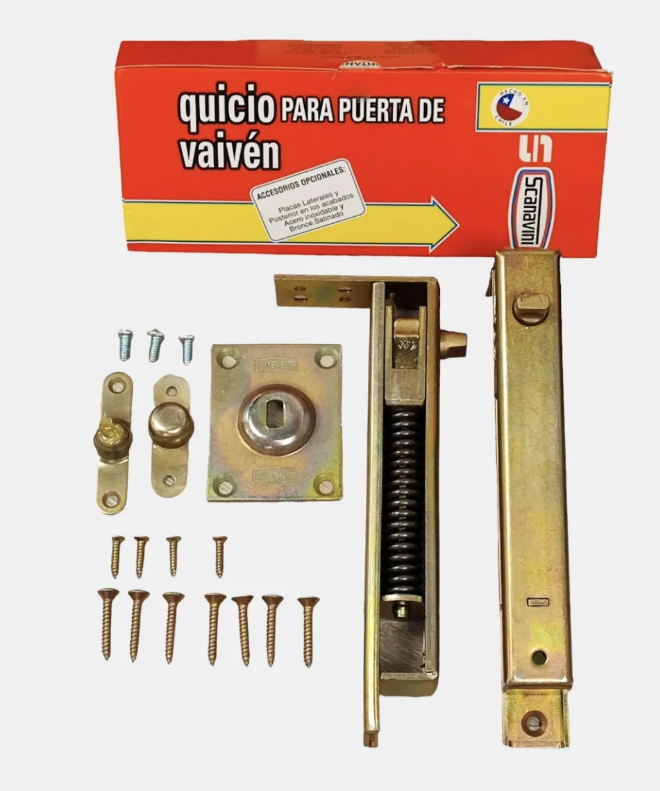 El Quicio para Puerta Vaivén sin Placa Scanavini 615 es un herraje diseñado para puertas de doble acción, permitiendo apertura en ambos sentidos y retorno automático a la posición cerrada.