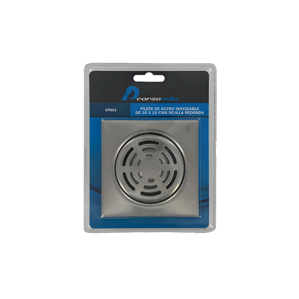 Rejilla cuadrada de acero inoxidable diseñada para piletas sanitarias de piso, equipada con sistema antiolor que evita el retorno de gases del alcantarillado. Ideal para baños, duchas y áreas húmedas donde se requiere una solución estética, resistente y funcional. Su diseño permite un drenaje eficiente y facilita la limpieza periódica.
