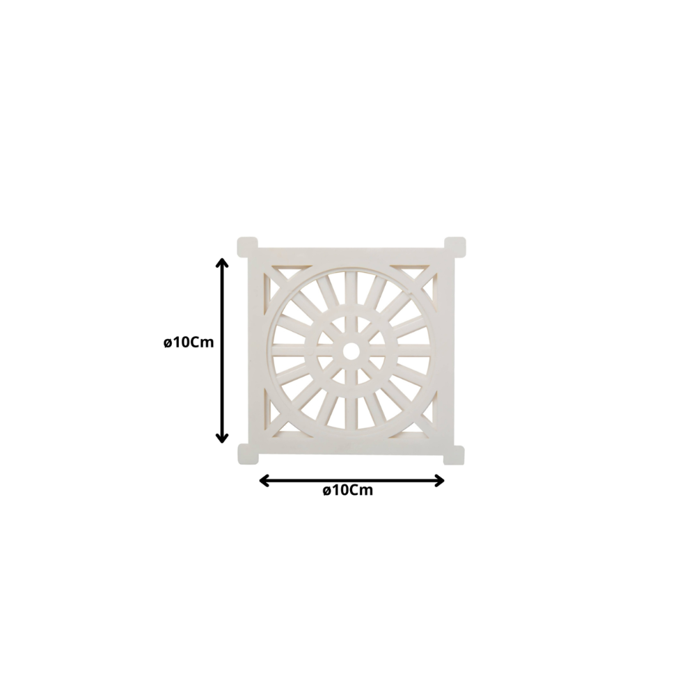 Descripción: Rejilla sanitaria de forma cuadrada, fabricada en plástico rígido color blanco, diseñada para cubrir piletas de desagüe de 10 cm (100 mm). Permite el paso de agua residual mientras retiene residuos sólidos de mayor tamaño, facilitando el drenaje y evitando obstrucciones en sistemas sanitarios. Material resistente a la humedad y adecuado para instalaciones domésticas, comerciales e industriales ligeras.