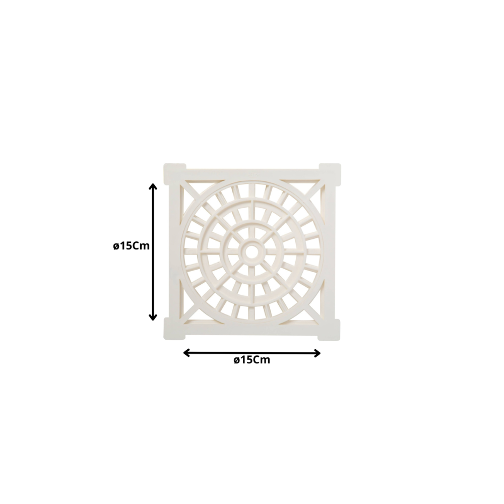FICHA TÉCNICA – REJILLA PILETA PLÁSTICA 15 cm CUADRADA BLANCA