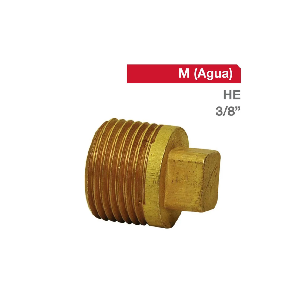 Tapa o tornillo roscado fabricado en bronce, diseñado para sellar terminales o extremos de tubería o accesorios roscados de 3/8”. Proporciona cierre confiable y hermético, evitando fugas y facilitando labores de mantenimiento o cierre temporal de líneas. Ideal para aplicaciones en sistemas de agua y gas de baja y media presión.