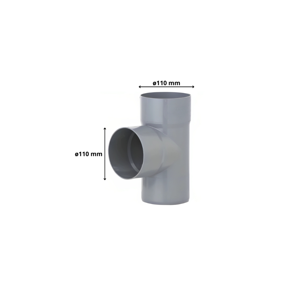 Accesorio en forma de “T” fabricado en PVC sanitario color gris, diseñado para derivaciones en sistemas de evacuación de aguas residuales y negras. Incluye conexión de registro (acceso) en el cuerpo para permitir limpieza, inspección o acceso al tramo interior de la tubería. Las uniones principales se realizan mediante cementado PVC para asegurar una conexión rígida y duradera.