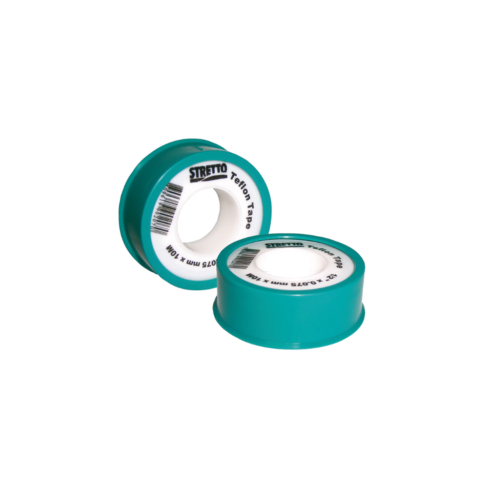 La cinta Teflón Stretto de 1/2 pulgada es una cinta selladora de roscas fabricada en politetrafluoroetileno (PTFE), diseñada para aplicaciones de plomería, gas y fluidos. Su función principal es llenar los huecos y espacios entre roscas metálicas o plásticas para generar un sello hermético y confiable en uniones roscadas de tuberías o accesorios.