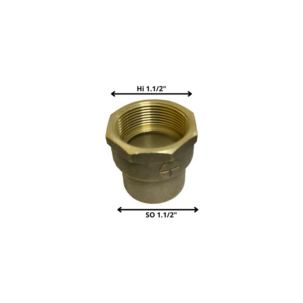El Terminal de Bronce SO‑HI 1 1/2″ es un accesorio de conexión de tubería fabricado en bronce diseñado para unir una tubería principal soldada con una conexión roscada hembra interior (HI) del mismo diámetro nominal de 1 1/2″.